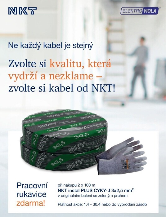 Při nákupu 2 balení kabelu NKT instal PLUS CYKY-J 3x2,5mm² ( 2x 100m kruh, ten se zeleným pruhem ) automaticky získáte jako dárek kvalitní pracovní rukavice zdarma.