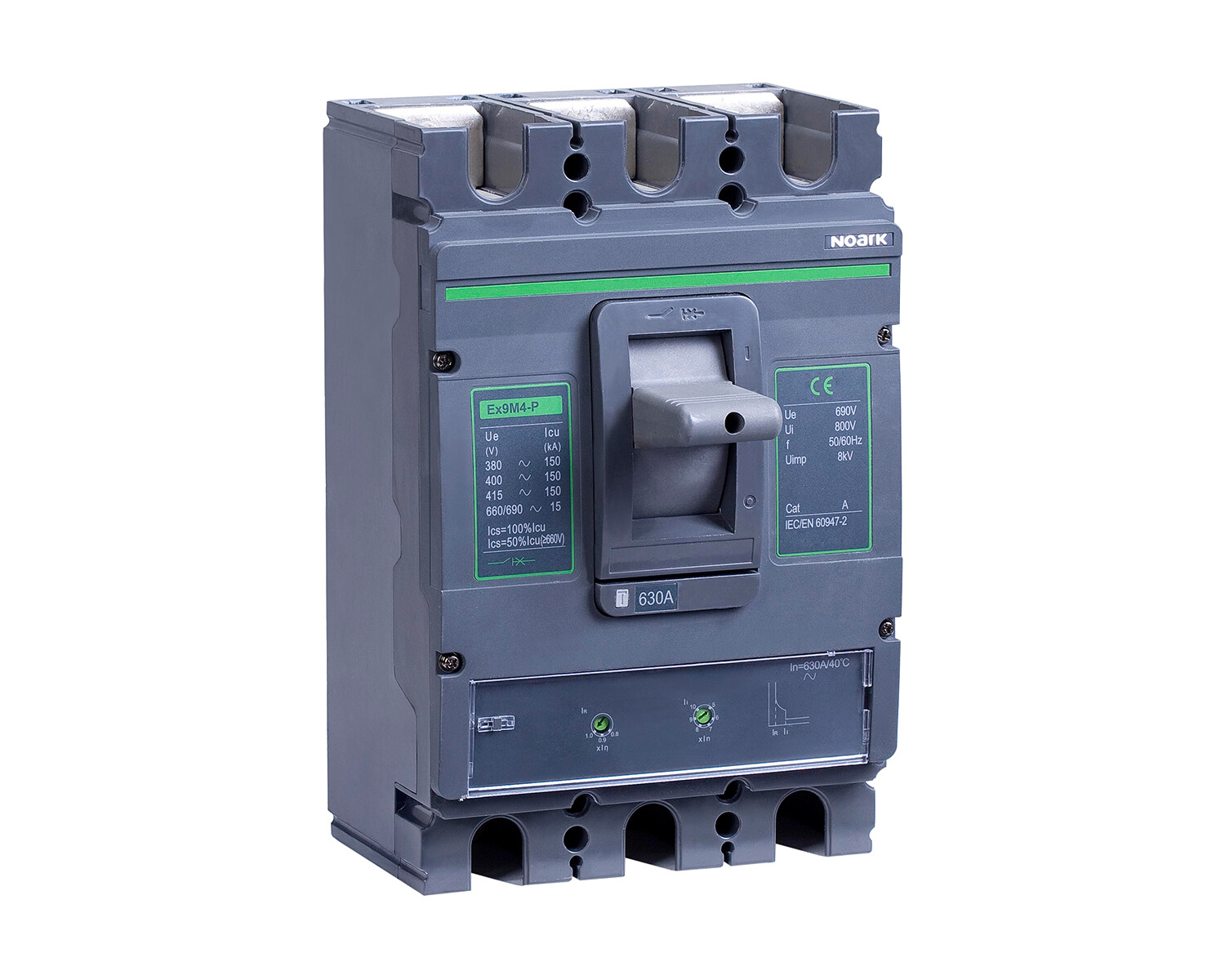 | Jmenovitý trvalý proud Iu 500 A | Rozsah nastavení spouště na přetížení 400 - 500 A | Nastavitelný rozsah nezpožděné zkratové spouště 2500 - 5000 A | Integrovaná ochrana proti zemnímu zkratu Ne |