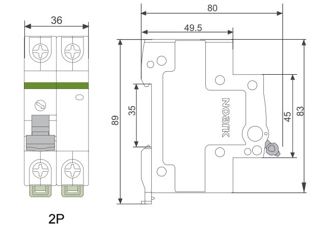 | Spínací funkce Vypínač | Počet pólů 2 | Jmenovitý proud 32 A | Jmenovité napětí 400 V |