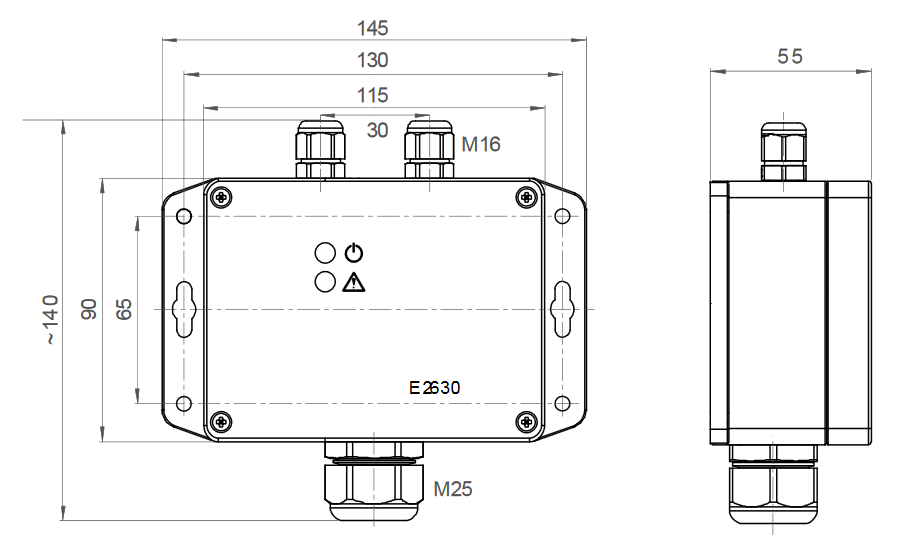 Vstupy: vývodka 2x M16 + 1x M25