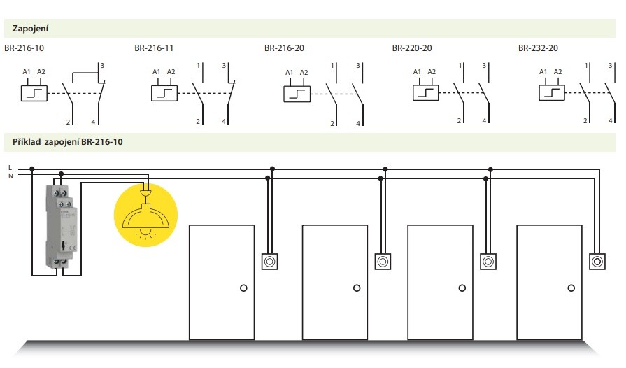 V provedení od 16 A - 32 A zabezpečuje bezproblémové spínání LED světelných zdrojů s nárazovými proudy do 80 A (BR-232-20). V běžné instalaci pro řízení osvětlení bývá použito velké množství kabelů, avšak u bistabilních relé se pro signální ovládání používají pouze 2 vodiče. Díky tomu bistabilní relé přináší úsporu již při samotné montáži (spotřeba kabelů, čas instalace...)