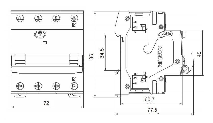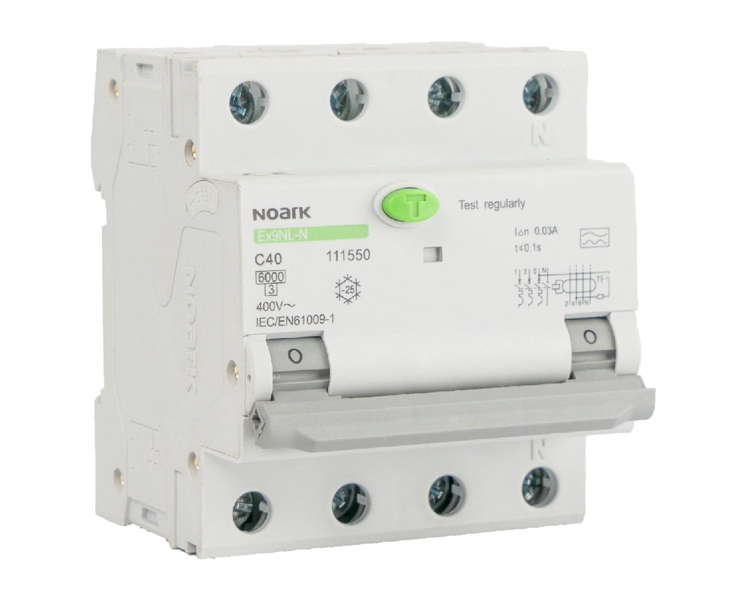 Kombinované chrániče NOARK Ex9NL-N jsou vhodné jak pro domovní tak i pro průmyslové aplikace. Jejich konstrukce je založena na kombinaci proudového chrániče a jističe s tepelnou a elektromagnetickou spouští. Nenulové napětí je potřebné pouze pro funkci obvodu testovacího tlačítka "T" během testu chrániče.