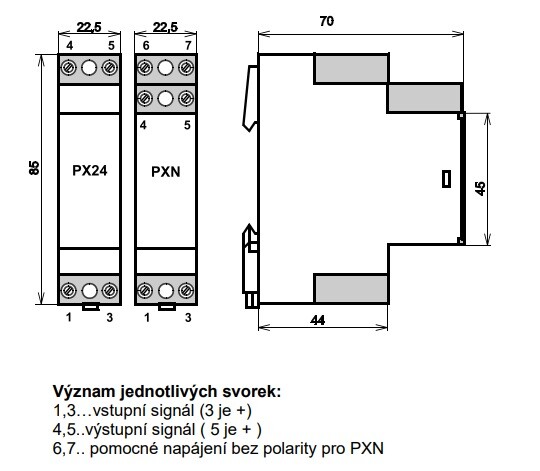 RAWET PXN Převodník stejnosměrného napětí a proudu s galvanickým oddělením
