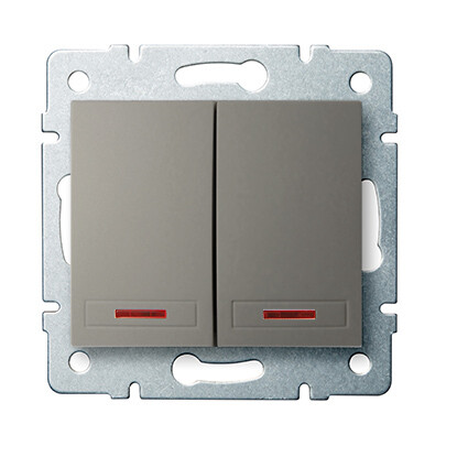 | Montáž Základní prvek s centrální krycí deskou | Provedení Skupinové tlačítko | Druh ovládání Kolébka | Počet ovládacích kolébek 2 |