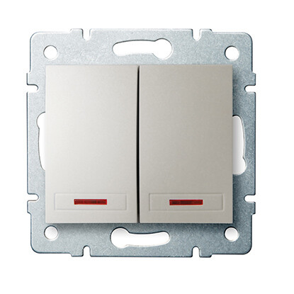 | Montáž Základní prvek s centrální krycí deskou | Provedení Skupinové tlačítko | Druh ovládání Kolébka | Počet ovládacích kolébek 2 |