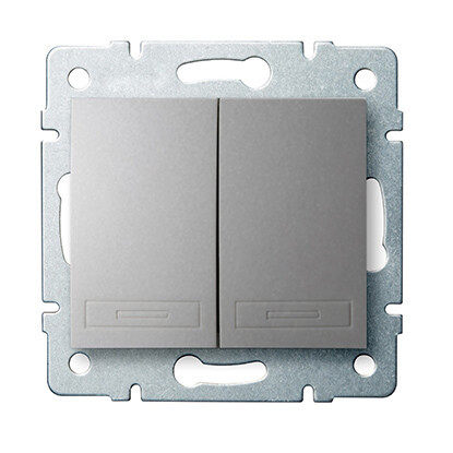| Montáž Základní prvek s centrální krycí deskou | Provedení Skupinové tlačítko | Druh ovládání Kolébka | Počet ovládacích kolébek 2 |