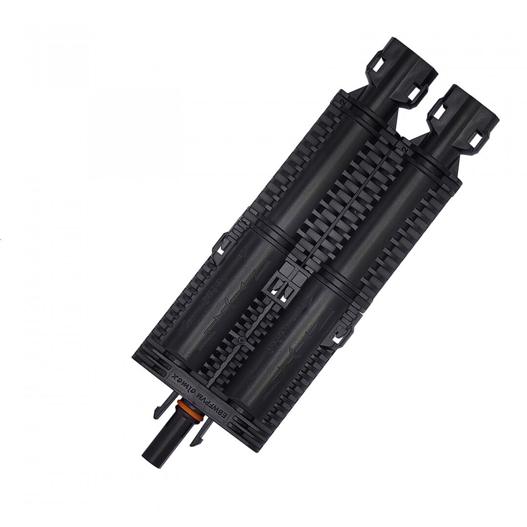 Rozbočné a slučovací konektory EBWFPVM1500, EBWFPVF1500 jsou vyráběny z nehořlavého technického termoplastu vhodného pro vystavení UV záření a pro použití v systémech výroby FV energie. Připojení vodičů se provádí pomocí přímých konektorů. Konektory jsou v provedení 2 x zástrčka / 1 x zásuvka a v opačném. Do konektorů se vkládají pojistky gPV (cylindrické) Ø 10 x 85 mm. Konektory jsou vyráběny z nehořlavého technického termoplastu vhodného pro vystavení UV záření a pro použití v systémech výroby FV energie. Konektory obsahují flexibilní vodotěsné těsnění, konektory vyhovují IP 68 v zapojeném stavu. Bez vodičů IP 20. Rozpojení konektorů se provádí pomocí klíčů, viz příslušenství. Konektory jsou certifikovány certifikační společností TUV, dle norem EN 50618 / IEC 62930.