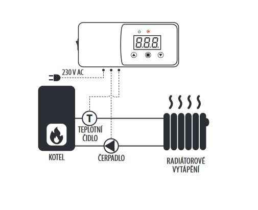 Poptat cenu: TC EPT11W Termostat pro ovládání oběhového nebo cirkulačního čerpadla, Antistop, 230V, 20-80°C