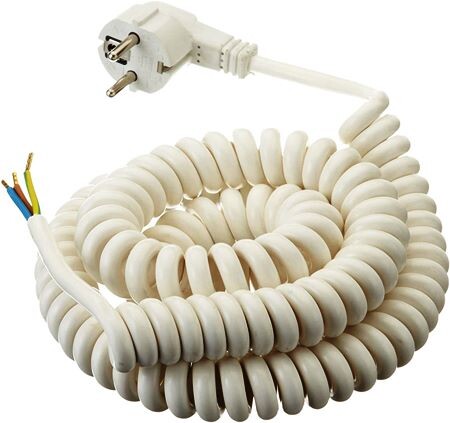 TEKACABLE AK 86 3157-3-101/5 Přívodní kabel H05VV-F 3x1,5 s úhlovou vidlicí, L=5m, kroucený, volné konce, PVC, bílá