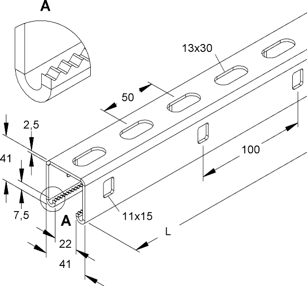 Poptat cenu: NIEDAX 2996Z/6 FL Kotevní lišta, C-profil s drážkou 22 mm, 41x41x6000 mm