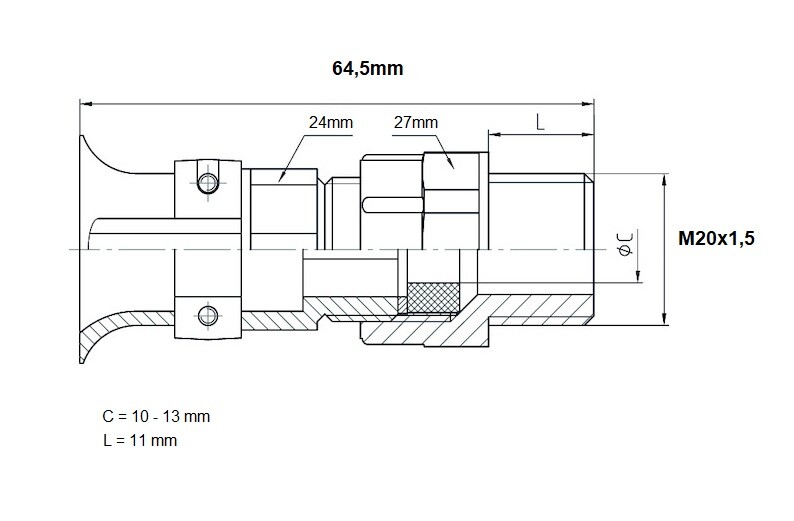 Poptat cenu: JACOB 22.616M20PA Kabelová průchodka M20x1,5 PA 11mm IP55 plast, šedá
