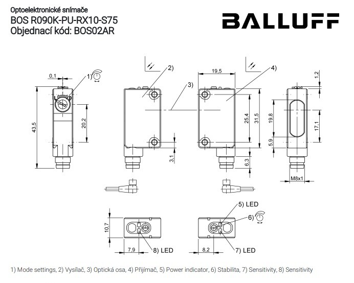 BALLUFF BOS02AR / BOS R090K-PU-RX10-S75 Jednocestná optická závora