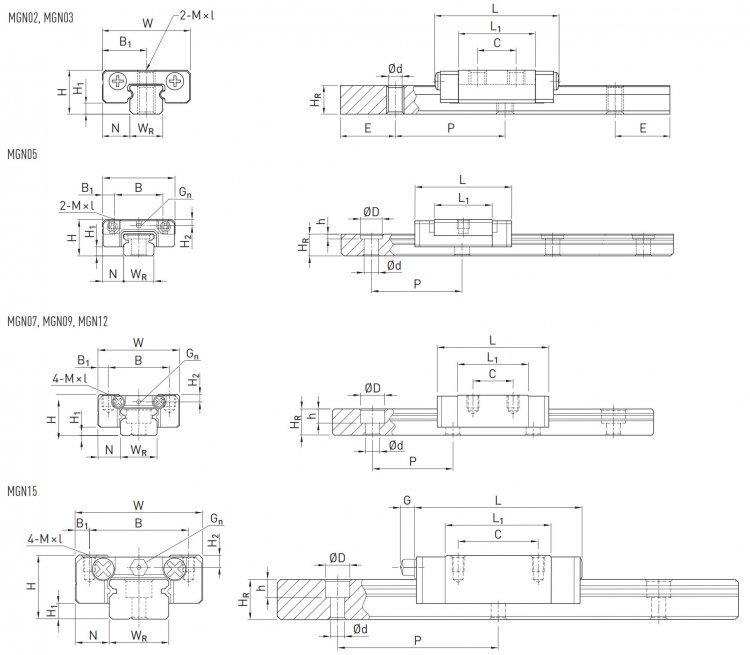 Poptat cenu: HIWIN MGN 07H Z0HM Vozík miniaturní úzký dlouhý, X65Cr13
