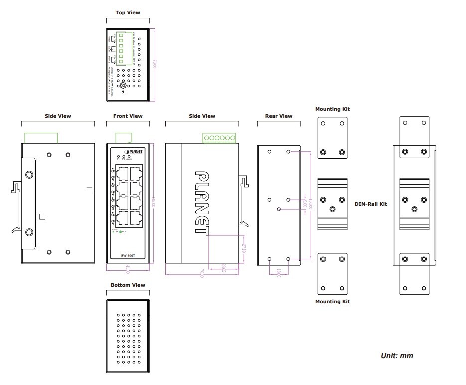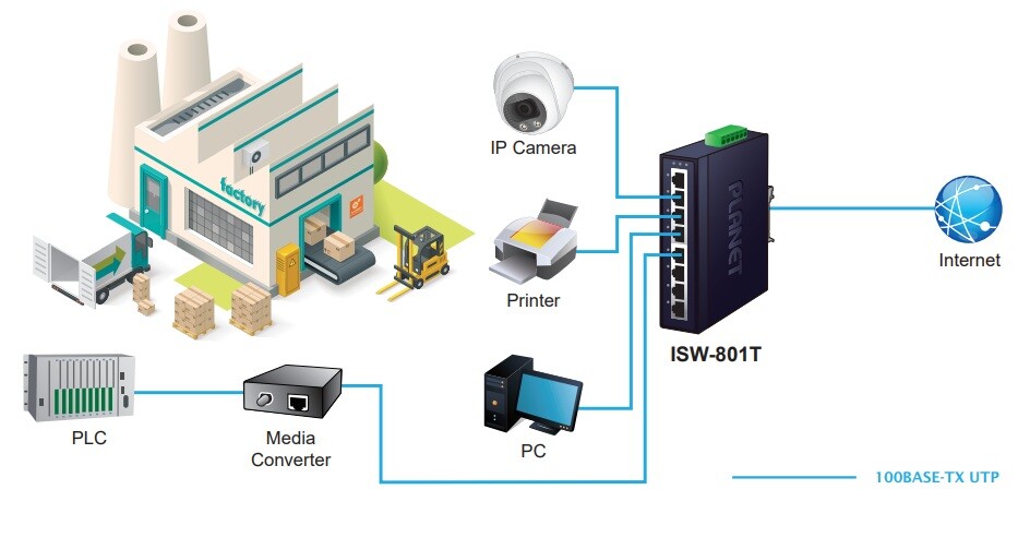 PLANET ISW-801T 8portový neřízený průmyslový switch 10/100Mbps IP30