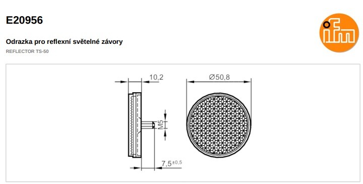 Poptat cenu: IFM E20956 REFLECTOR TS-50 Odrazka pro reflexní světelné závory