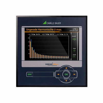 Napájecí napetí: 110...230 V AC, 130...230 V DC s TFT displejem, montáž do panelu, 4 proudové vstupy (pro proudové transformátory i prímé pripojení), 42..50/60..69,5 Hz, 1 digitální výstup (pasivní) 2 digitální vstup/výstup (pasivní) Komunikacní pripojení: Ethernet + RS485 (protokol Modbus) Integrovaná funkce webového serveru (webGUI).