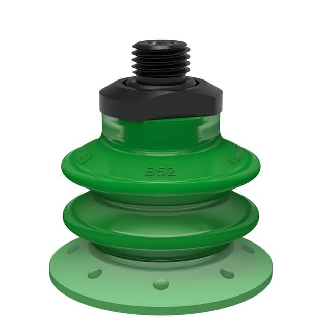 přísavka DURAFLEX® průměr 53 mm, polyuretan, 60° Shore A, zelená včetně vestavěného filtru s přípojem G1/4" vnější, hliník filtrační sítko, kompletní přísavka