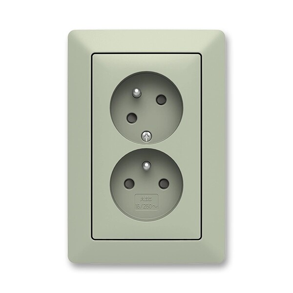ABB 5513T-C02157 143, ZONI Zásuvka dvojnásobná s ochrannými kolíky, s clonkami, s natočenou dutinou; olivová / bílá