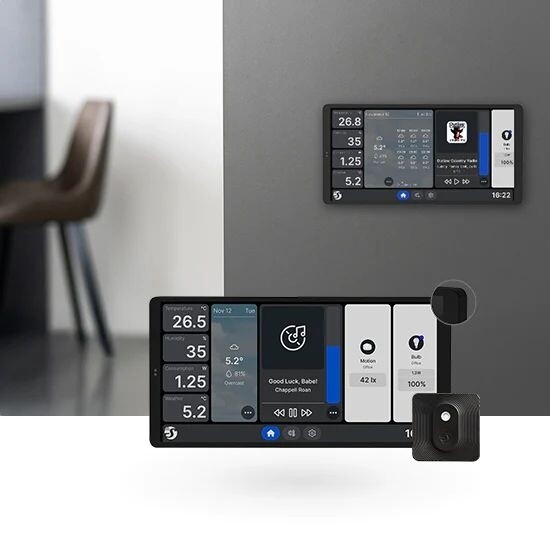 Poptat cenu: SHELLY WALL DISPLAY X2+BLU H&T Nástěnný panel s dotykovým displejem 6,95" a senzorem teploty a vlhkosti, WiFi, Bluetooth, černá/černá