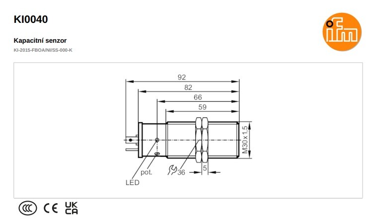IFM KI0040 Kapacitní senzor KI-2015-FBOA/NI/SS-000-K