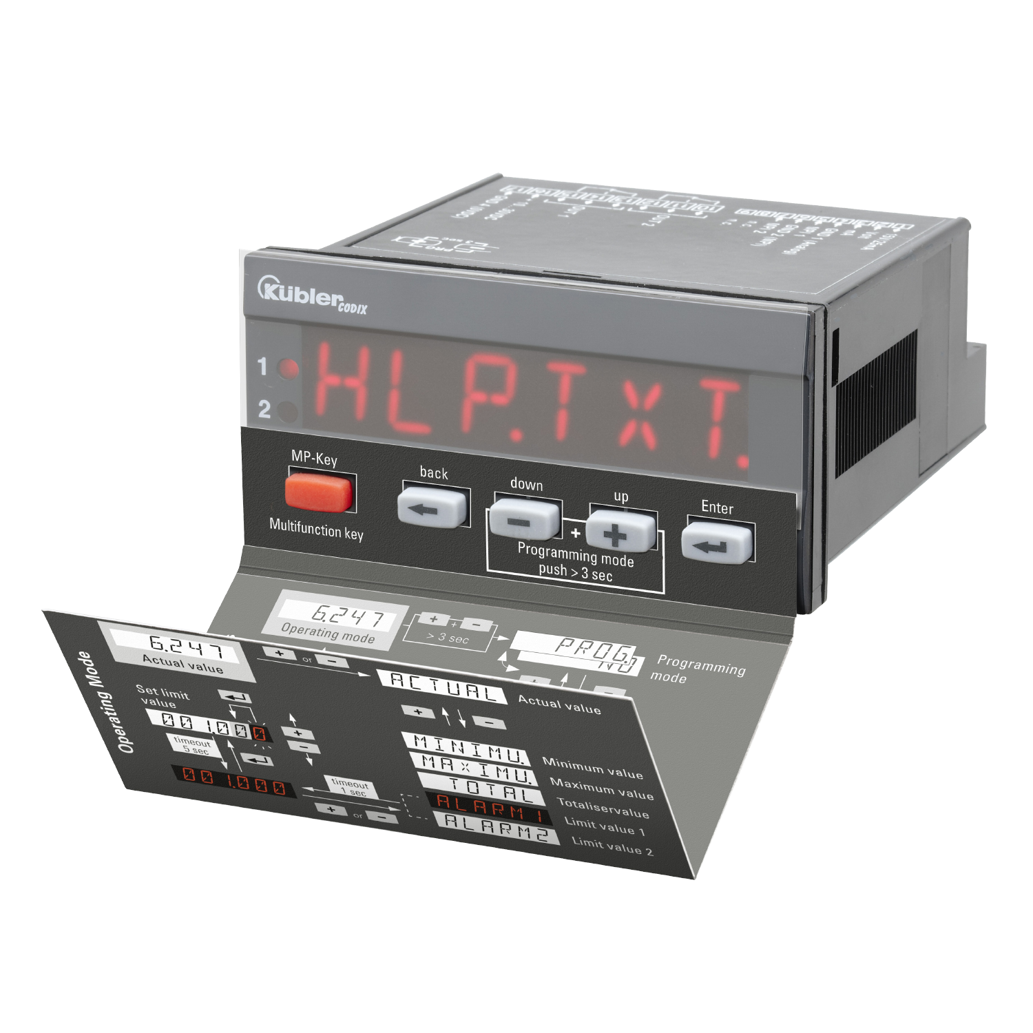 Procesní řídicí jednotka Codix 565 s funkcí součtu zobrazuje naměřené hodnoty standardních signálů V a mA ve vysokém rozlišení a monitoruje a řídí 2 mezní hodnoty.
