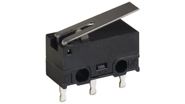Sub minature snap action switch, SPDT, PCB mount, hinge lever, 3 A