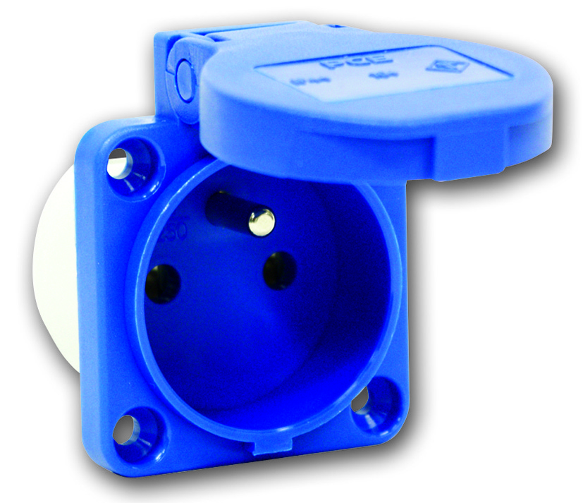 PCE 104-7b zásuvka vestavná 3-pólová, 16A/220V CZ, krytí IP 54, příruba 70x70mm,modrá